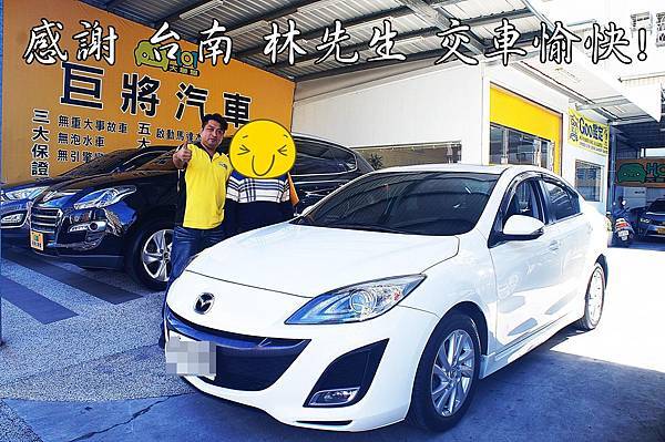 林大哥因想換一台車,看了許多的網路,也跑了好多的店家,但都因為看到了低價行銷的店家,去到現場都沒車可看,不然就是車價都不一樣,從台南一路找尋到高雄,一樣的問題重複發生,正當失望之際,路過了巨將汽車,想說反正被騙了這麼多間了,進來看看如還是一樣就不買回台南了,一進到巨將汽車遇到了阿宏業務專員,熱情的接待他,讓他賓至如歸的感覺,加上他看到了跟他之前看的店家不一樣的東西,實車在店實價登錄,加上阿宏業務專員細心的解說與熱情的接待,讓林大哥對中古車又燃起了信心,當天就下訂買了一台自己喜愛的馬3,今日交車林大哥開心直說能認識我們真好,有親戚朋友要買車一定會介紹過來巨將汽車選購。